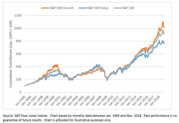 Over the last decade, growth has outperformed value stocks. Generally speaking, growth stocks are more volatile and because value stocks are considered cheaper, they are expected to decline less in a market downturn.